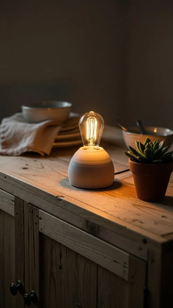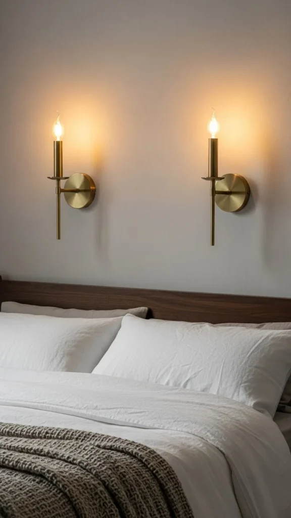 Candle-style bulbs add charm without wax. Mount sconces slightly above eye level. Plug-in styles avoid wiring. Wall lighting frees surface space and feels intentional.