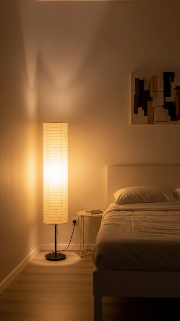 Paper shades spread light evenly and gently. Place the lamp in a corner to bounce glow across walls. Soft corners feel intentional and warm. Low-watt bulbs work best. This option is affordable and easy to swap when seasons change.