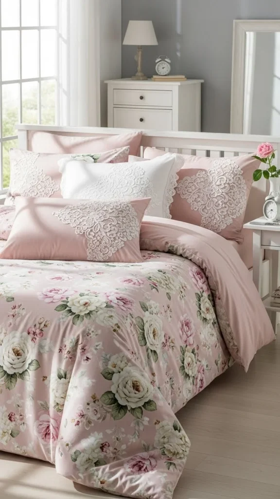 11. Pink Floral Bedding Layers