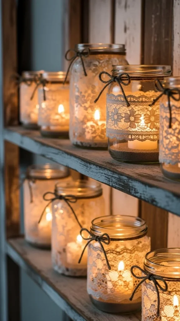 14. Lace-Wrapped Candle Jars