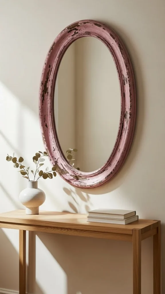 Old mirrors reflect light gently. Paint frames lightly. Hang slightly off-center. Quiet elegance works well here.