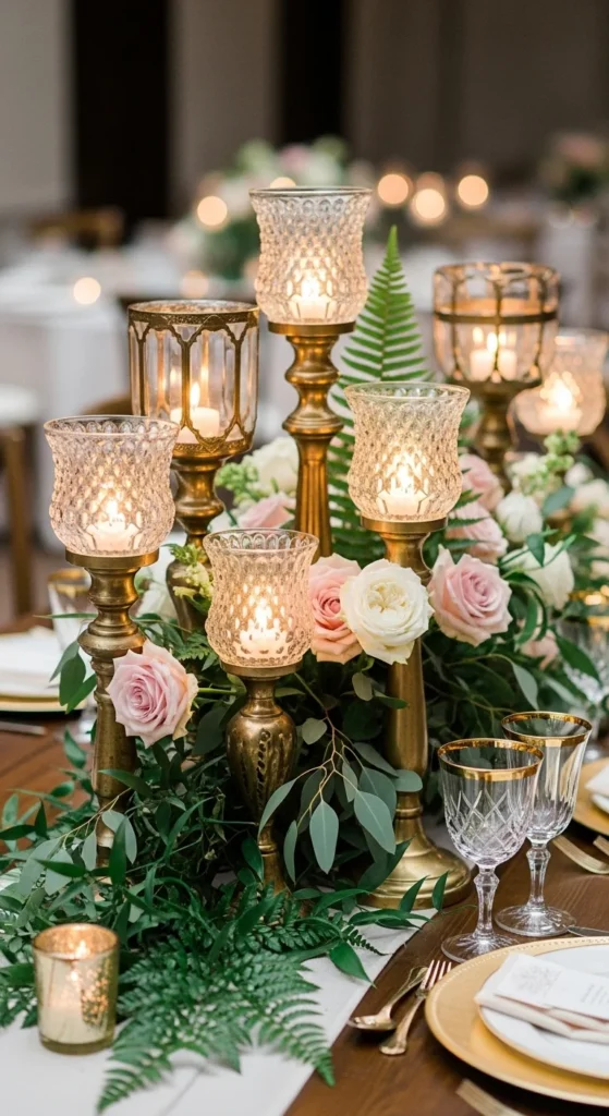 Vintage candle holders add timeless charm to your tablescape. Mix brass, silver, and glass for variety. You can thrift or rent them to stay within budget. Cluster them in odd numbers for balance. Their flicker gives a soft, romantic glow that pairs beautifully with floral arrangements.