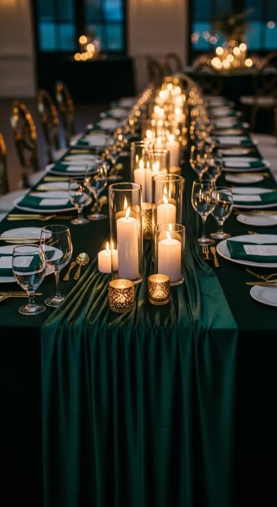 Velvet runners bring texture and luxury. Their rich sheen looks incredible under candlelight. Choose jewel tones like burgundy, navy, or emerald for dramatic contrast. Layer over wooden or neutral tables for an effortlessly elegant finish.