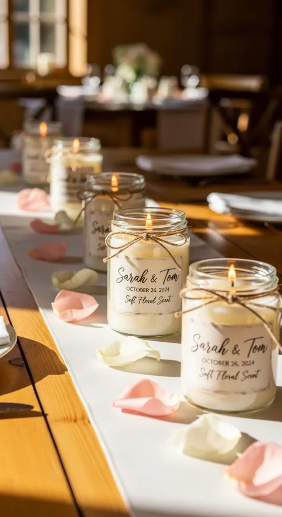 Scent ties memory to emotion. Create your own candle fragrance and give them as favors. Display them in matching jars with custom labels. Lighting a few during the event fills the air with a subtle, personal aroma that guests associate with your day.