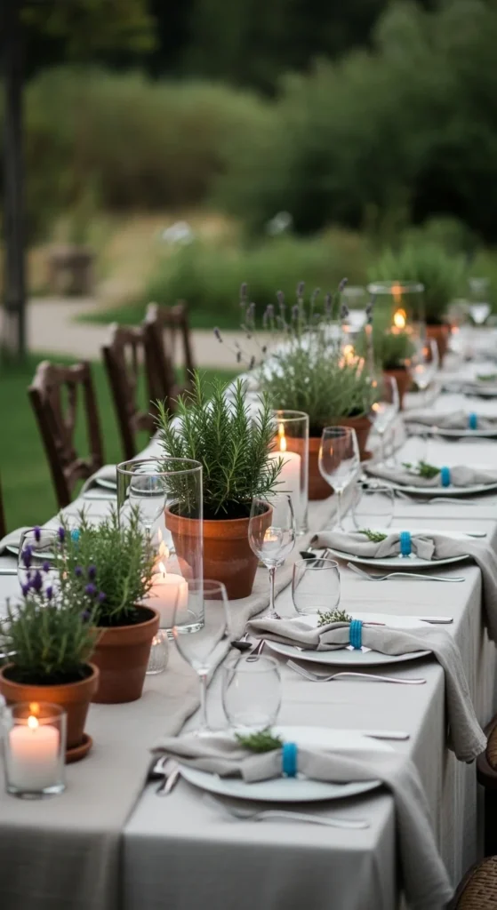 Potted plants add fragrance and life to tables. Use herbs for a natural touch and subtle scent. They double as gifts for guests or eco-friendly favors. The greenery feels organic and ties effortlessly into outdoor or bohemian themes.