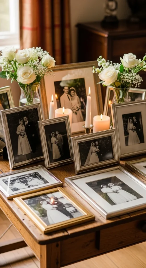 Honor family history with a photo display. Include wedding photos of parents and grandparents to celebrate legacy. Mix frames of various styles for character. This sentimental touch connects generations and sparks conversations among guests.