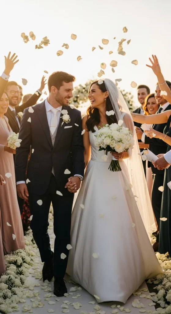 Confetti exits mark a joyful finale. Use biodegradable petals or paper for easy cleanup. Match the color to your theme — white for elegance, pastel for whimsy. Have guests gather outside for one last magical photo moment.